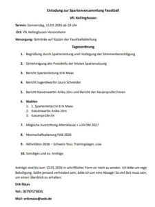 Fußball Spartenversammlung 2026 am FREITAG 16.1.26