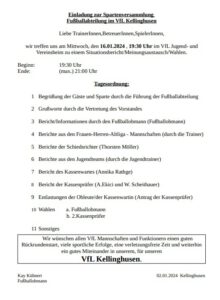 Fußball Spartenversammlung 2026 am FREITAG 16.1.26