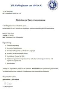 Leichtathletik Spartenversammlung 2026 am Mittwoch 14.01.2026